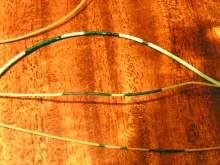 Do you have a collection of old lines, and odd lengths of line that are the remains of shooting-head experiments from the past, and you can't be sure what AFTM weight they are? Well, now you can find out. Weigh the first 30 feet and you will know. Keep the rest of the line supported and level with the coil while you are weighing, so that it doesn't influence the weight of the 30 foot coil. Again Martin's table gives the weights for standard AFTM lines from AFTM 3 to 10. Weigh the off-cuts from your old experiments and see what they tally. Perhaps you could do some really crazy trials with very short and heavy shooting heads for some special situation.
