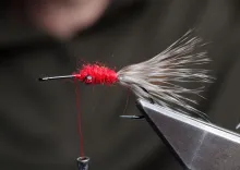 The original Racoon was tied in four sections with the tail and three hackles. Many current versions are tied with only two sections - a red and a light one - separated by a single hackle and finished with one in the front. In this configuration the fly is lighter and more airy and faster to tie, which is preferred by many.