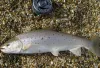 When the sea trout is in salt water it's normally 'uncolored' meaning shining silvery with a bluish black back. Also the scales are normally many, but loose, and will fall off when the fish is touched. The fish is in an excellent condition, as it is eating all the time. |